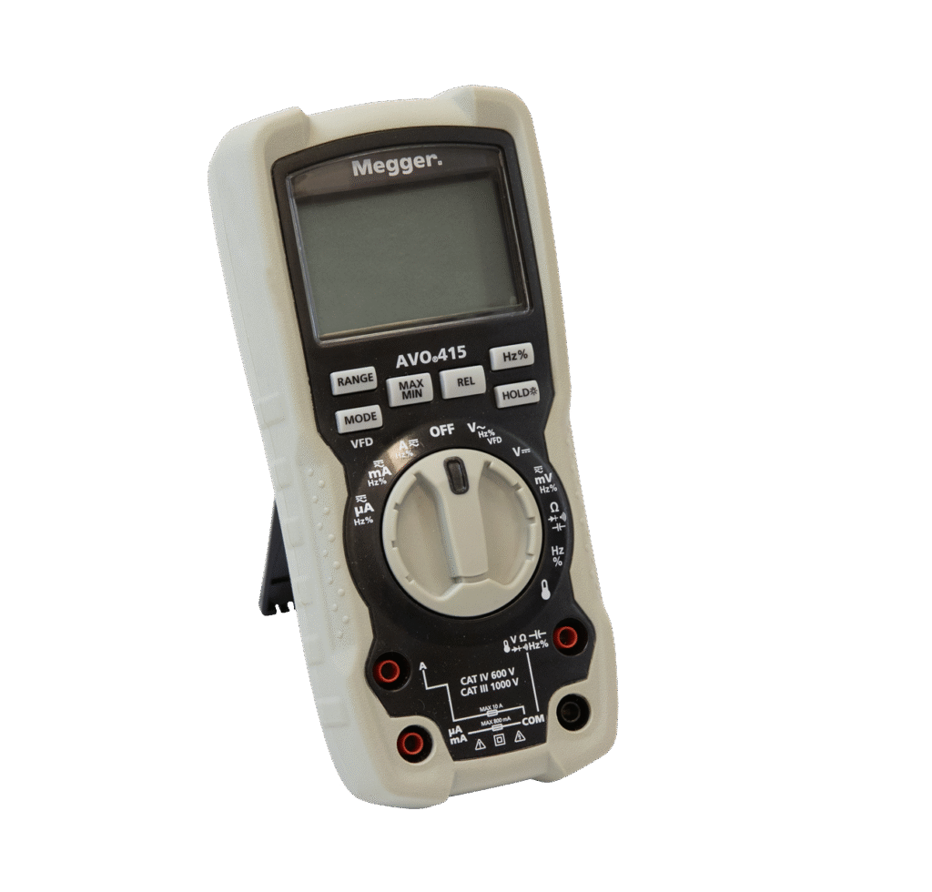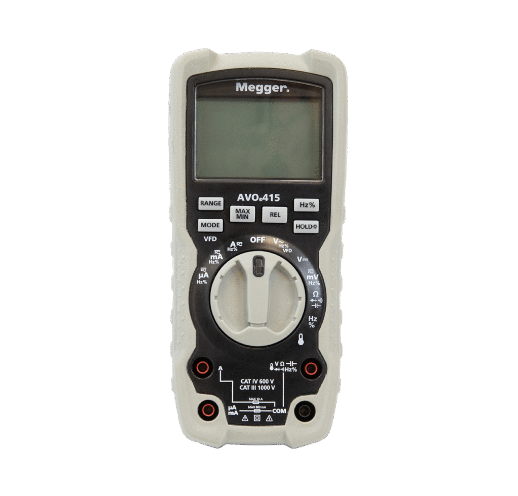 The Digital Multimeter with VFD AVO415 TRMS integrates advanced True RMS circuitry with low-pass VFD filtering. Moreover, this combination ensures accurate voltage and current measurement on inverter-driven loads. Therefore, technicians can trust readings on motors and drives. In addition, the instrument measures AC/DC voltage, AC/DC current, resistance, capacitance, and frequency. Furthermore, it includes continuity and diode test functions for component verification. Consequently, the multimeter supports detailed electrical analysis. As a result, users reduce reliance on multiple devices. Also, digital signal processing improves measurement stability in noisy environments. Thus, readings remain consistent. Moreover, the LCD displays real-time values clearly. Therefore, operators can interpret results quickly. In addition, built-in protection circuits enhance user safety. Finally, the AVO415 complies with professional electrical testing standards.