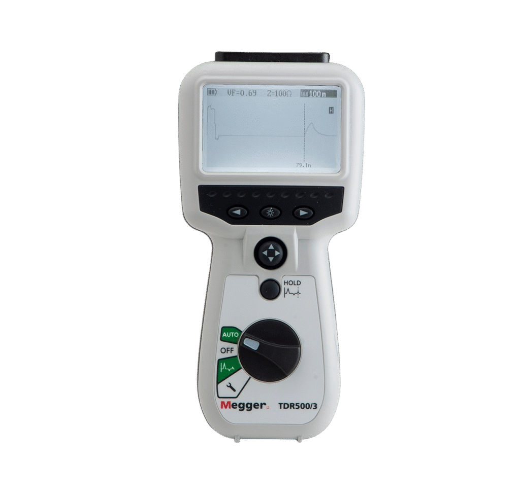 The Handheld single channel time domain reflectometer – TDR500/3 operates using TDR measurement principles. Moreover, it injects a defined pulse into the cable under test. Therefore, impedance discontinuities generate reflected signals. In addition, the device calculates fault distance from signal travel time and propagation velocity. Also, selectable output impedance supports common cable standards. Furthermore, digital signal processing improves trace clarity. However, testing remains non-destructive and safe on de-energized cables. Consequently, insulation integrity is maintained. As a result, the instrument supports preventive maintenance. Thus, faults such as open circuits, short circuits, and joint defects are located precisely. Moreover, the instrument supports waveform zoom and cursor functions. Therefore, detailed analysis is possible. In addition, internal memory stores multiple traces. Also, USB connectivity supports data transfer. Finally, the TDR500/3 applies proven electrical diagnostic technology for accurate cable fault location.