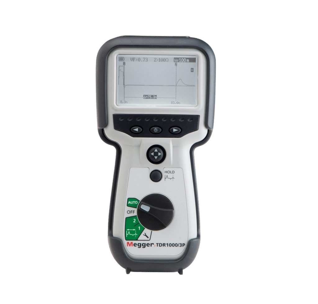 The Handheld time domain reflectometer – TDR1000/3P operates using advanced TDR measurement technology. Moreover, it injects a fast rise-time pulse into the cable under test. Therefore, discontinuities such as open circuits, short circuits, and joints create reflected signals. In addition, the instrument measures time delay and applies propagation velocity to calculate fault distance. Also, selectable output impedance supports common cable standards. Furthermore, digital signal processing improves waveform resolution. However, testing remains non-destructive on de-energized cables. Consequently, cable insulation integrity is maintained. As a result, the device supports preventive and corrective maintenance. Thus, near-end and far-end faults are located precisely. Moreover, cursor and zoom functions support detailed waveform analysis. Therefore, users can interpret results accurately. In addition, internal memory stores multiple traces. Also, USB connectivity supports data transfer and documentation. Finally, the TDR1000/3P applies proven electrical diagnostic methods for accurate cable testing.