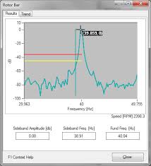 The rotor bar function records the relative amplitude of the rotor-bar sideband, and compares the rotor cage signature to stored thresholds.The rotor bar test evaluates the overall condition of the machine. Broken rotor bars cause excess heat on the machine, decreasing efficiency, shortening insulation life, and possibly causing core damage.