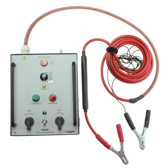 Vacuum interrupter tester, Megger (Sweden) make Model : VIDAR,Permanent mounted cable 5meters includes Ground Cable, Transport Case, User manual , Test report and Calibration certificate